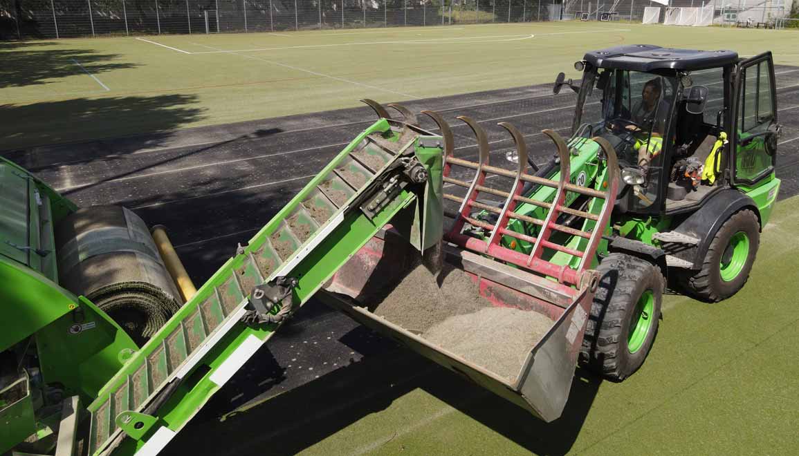 Raff: In den letzten Jahren haben wir viel in die Zukunft der Kreislaufwirtschaft investiert. Unter anderem Betreiben wir in Süddeutschland eine Anlage zur hochreinen Trennung von Sand und Infill! Auch mobile Anlagen zur Aufbereitung/Regranulierung von elastischen Tragschichten (ET/EL) direkt an der Anfallstelle gehören zu unserem Portfolio. Aktuell arbeiten wir an weiteren Technologien, welche das Recycling noch besser machen.